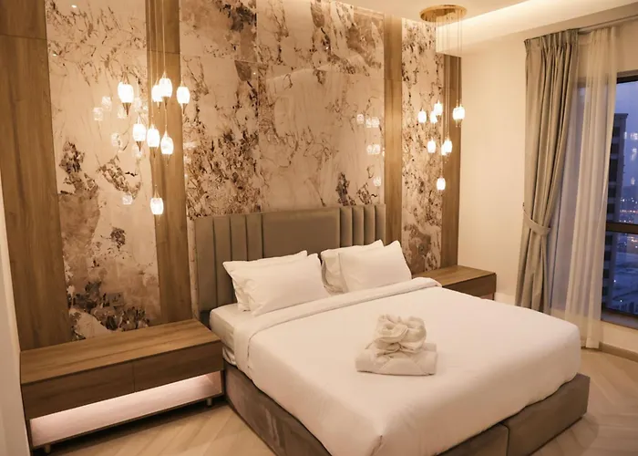 The 130 m² The Royale Vista Burj Khalifa View Residence Dubai is situated around a 5-minute walk from Dubai Trolley and 5 km from Dubai Creek SPB airport. At this spacious apartment guests can lounge by a swimming pool or visit the Kidzania, which is located only 650 metres away.